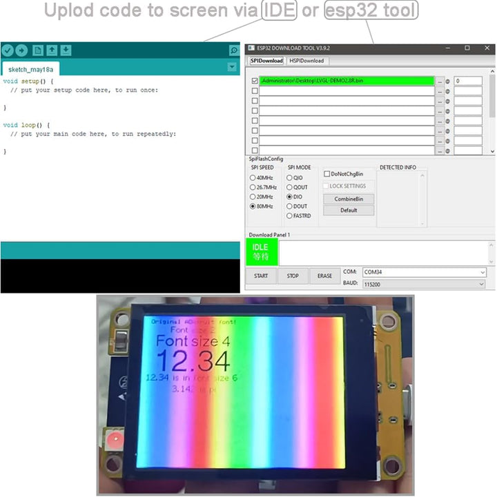 Compatible with Arduino IDE and the ESP32 flash tool, code can be uploaded effortlessly, providing developers, students, and hobbyists with a versatile all-in-one development and display solution.