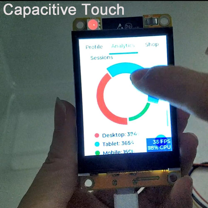 2.4" TFT LCD capacitive touchscreen (240×320 resolution, ILI9341 driver)