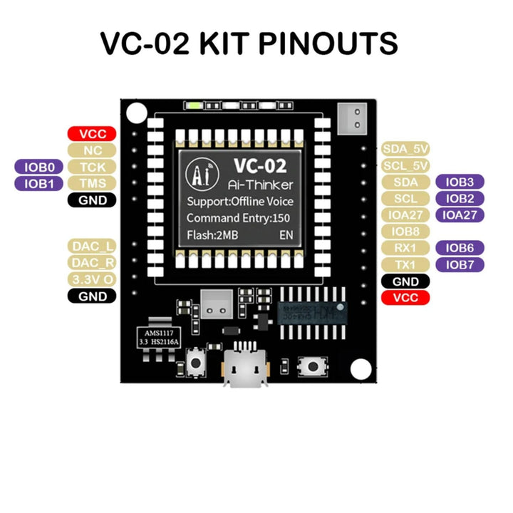 Compact and lightweight, the Ai-Thinker VC-02-Kit is an ideal choice for AI-driven projects, voice processing systems, smart display controllers, and IoT edge applications that require robust performance within a small footprint.