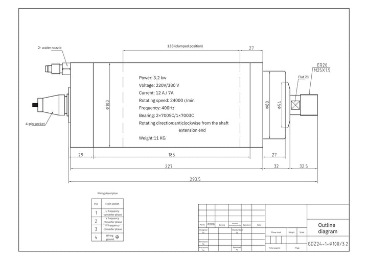 - 1 x HQD GDZ24-1B Spindle Motor (3.2 kW)