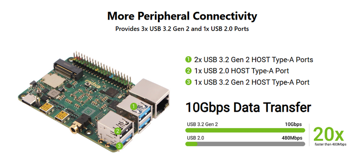 Provides 3x USB 3.2 Gen 2 and 1x USB 2.0 Ports