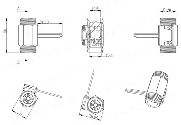 SEA YF-B1-S-SM G1/2 Inch Stainless Steel Water Flow Sensor G1/2 Inch 3.5 to 24V