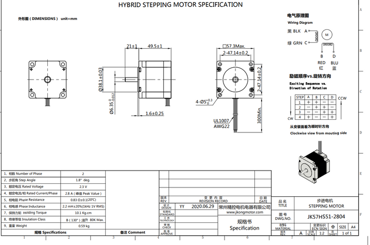 NEMA 23 JK57HS51-2804 10.1 kg-cm Stepper Motor Bipolar Hybrid